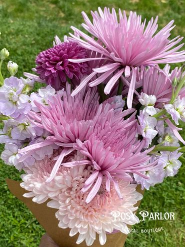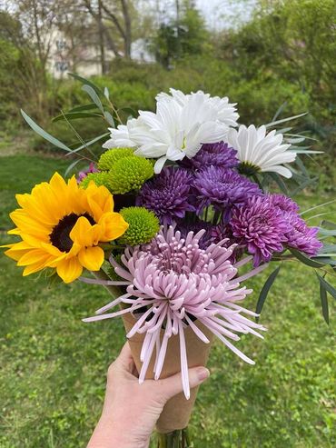 We also offer beautiful wrapped bouquets in two sizes. An 8 stem bunch and a 12 stem bunch. Please reach out for quantities and pricing.